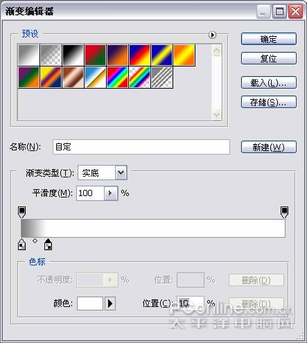 6. 设置渐变编辑器如下。用线形渐变,模式为正片叠底,在原图层上左右拖动出如下效果(图7)