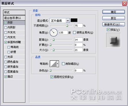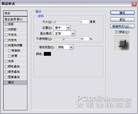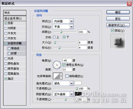 9. 单击图层面板上的图层样式按钮,设置如下。(图10、11、12)