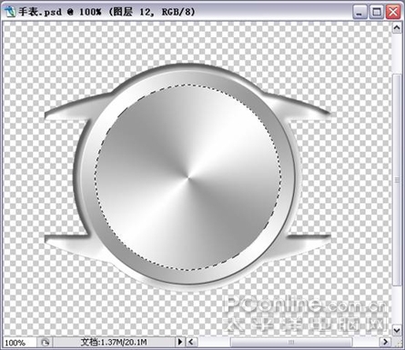14. 把选区收缩18个(根据自己的设置)象素,建个新图层与前一步相同只是反方向拉动渐变。获得第二个圆盘。(图18)