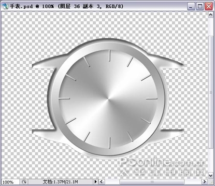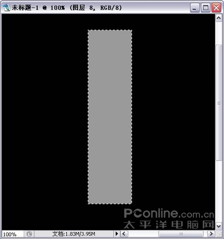 20. 下面来做时针,为了大家看的清楚,笔者在新的文件上画,(可能有些人要骂笔者罗嗦了,会的不难,可是对新手来说,每一个步都重要,谁不是从零开始的呢?)用矩形选框工具画个选框,填充灰色,拉个灰白的渐变。(图24)