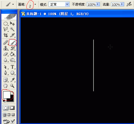 3、选画笔工具,设画笔大小为2像素,按x转换前景色为白色,按shift键垂直拖动鼠标绘制直线。