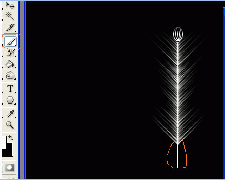 15、选择画笔工具,按住shift键在羽毛底部垂直拖动鼠标。