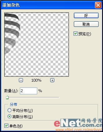18、取消选区,选择菜单栏中的“滤镜”“杂色”“添加杂色”命令,弹出“添加杂色”对话框,参数设置如图13所示。