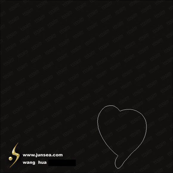 2.新建图层1,用工具条中自定义形状中的心形形状来拉一个心形,并用钢笔工具按住CTRL来拖动上面的节点调整一下它的形状,形状调不理想的话,可以添加一些节点后再作调整,(图1)。