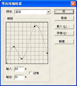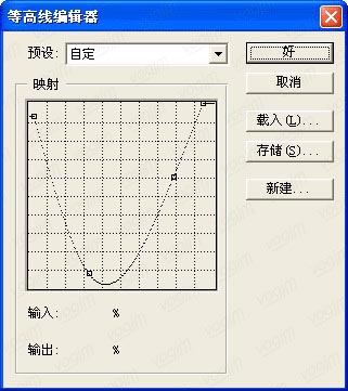 6.将此图层再复制一个置于上面,再按CTRL+I,将颜色反转,双击此图层,在弹出的图层样式中选择浮雕,将其中的光泽等高线调节至(图6)样子。再钩选光泽效果,将其中的等高线调节为(图7)样式,完成后如(图8)。