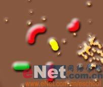 9、选择工具箱中的画笔工具,在巧克力上画一些各种颜色的糖果,效果如图13所示。