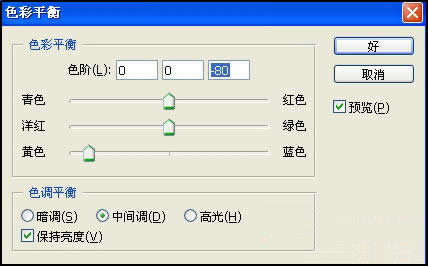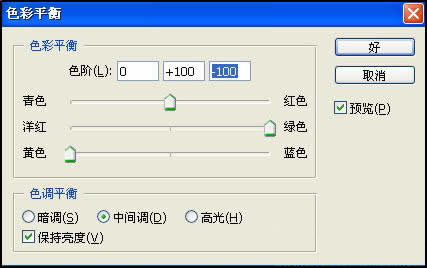 9、选择菜单栏中的“滤镜”“模糊”“径向模糊”命令,在径向模糊对话框中设置数量为20,方法为旋转,品质最好,按Ctrl键,将图像反相处理。按Ctrl+B键,弹出色彩平衡对话框,参数设置如图10所示,再次调整参数设置如图11所示。