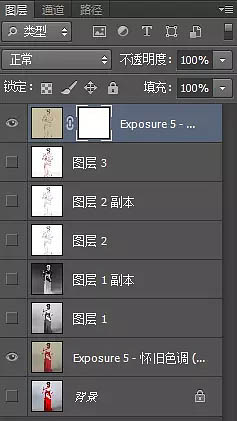 我们让最后使用了exposure预设的这两个图层可见,接下来这一步也是非常关键的步骤。