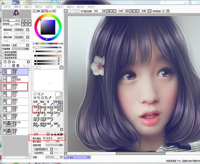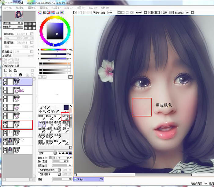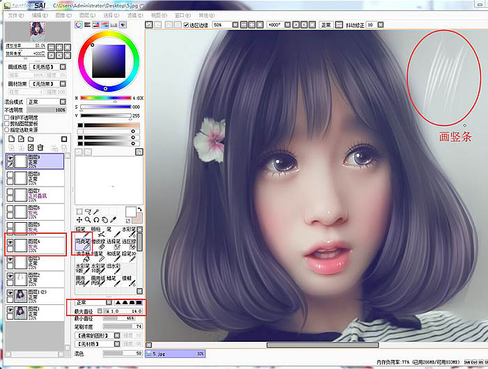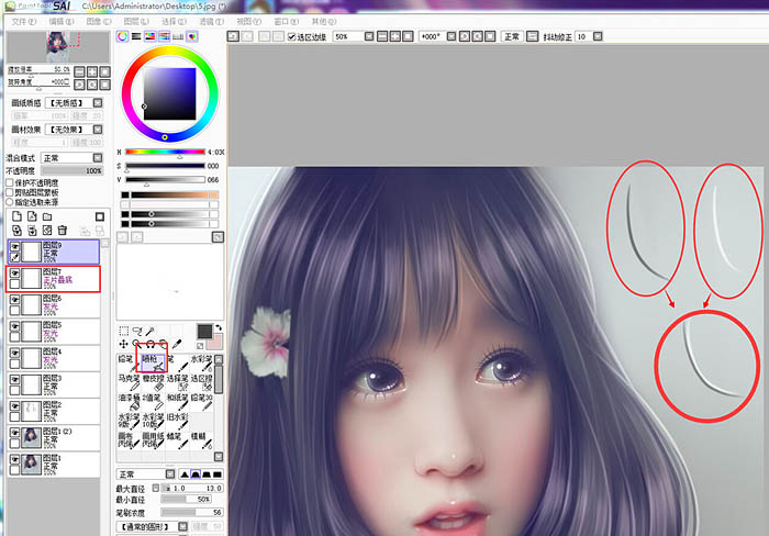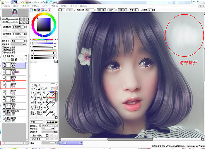 21、用皮肤色在头发的高光处画一层淡淡的。