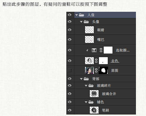 + J 复制图层并将此层放入到该组最顶部,眼睛部分也是如此,复制出来后将图层模式改为“颜色减淡”,这一步可以提升眼睛的亮度,记得适当调整不透明度。