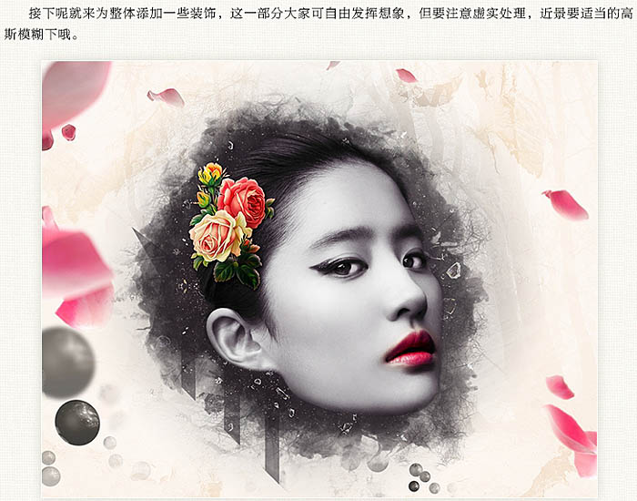 接下来就来为整体添加一些装饰,这一步大家可以自由发挥想象,但要注意虚实处理,近景要适当的高斯模糊下哦。