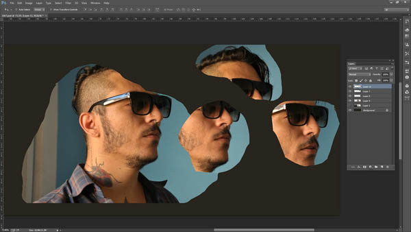 接下来,我们需要从拍摄好的照片中选择其中最好的部分来合成我们所需要的素材照片。以下图为例,笔者就从不同的照片中选择了脸、眼镜以及其他细节。在这个步骤中,即使眼光挑剔一点,都是不碍事的。