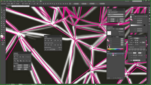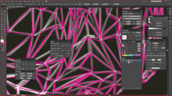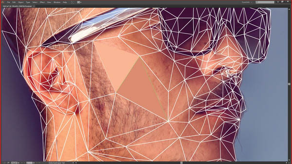 14、这里隐藏你在Photoshop中创建的网格,并再次检查你的网格有没有任何遗漏的三角形(笔者每次总是要忘记至少10多个三角形)。要做到这一点,最好的办法就是选择你所有的向量(命令/Ctrl+A),然后切换到填充和描边(Shift+x)。