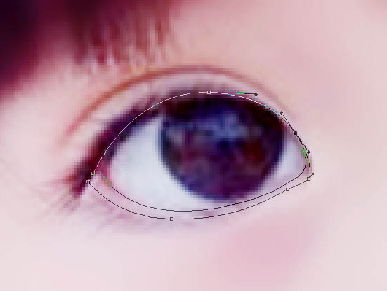 4、我们开始画眼线,先新建图层,(新手最好每画一个步骤就新建一个图层,这样方面后面的调整或修改)用钢笔工具跟着原图的眼线走向画出路径。