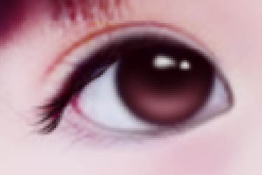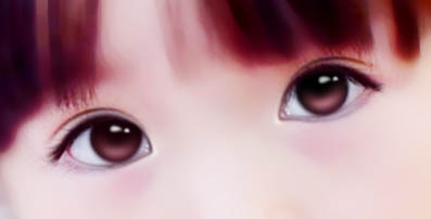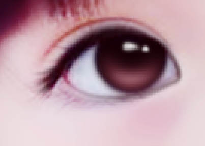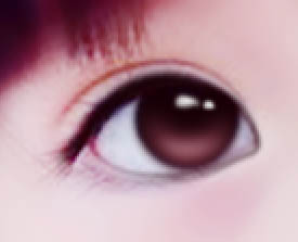 9、可以在眼角处点两点,看起来水灵点。最后为她画一个眼角高光,笔刷大小为3。