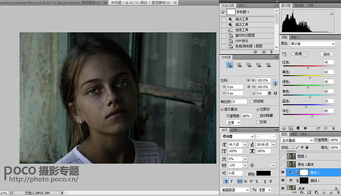 2、创建一个黑白调整图层(图层>新调整图层>黑白),设置混合模式为正片叠底。