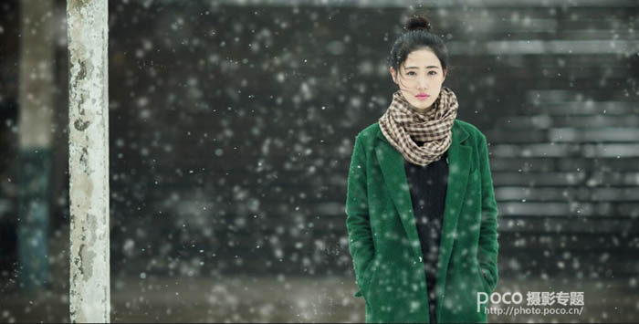 这样的色调处理基本上给照片定了一个稍稍偏绿的基调,这种颜色在另几张环境较多的片子里会更明显一些。选择这种色调处理有几个原因,一方面,这种颜色强化了麻豆服装的颜色,使片子整体色调和服装以及站台的绿色有所呼应;另一方面,淡绿色调普遍认为是一种唯美、青春味道较浓的色调,和整体氛围比较协调。当然,这也得看个人审美偏好了。