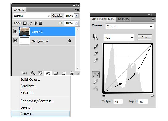 2、现在点击图标旁边的快速蒙版。这将创建一个新的填充或调整图层。选择曲线和调整图下图。
