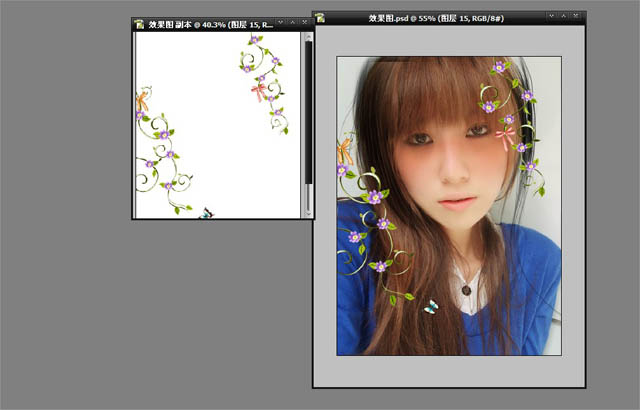 4、把花纹拖入其中调整好位置。