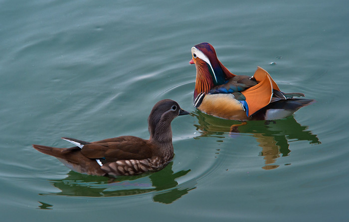 17、同上的方法加入喜鹊及鸳鸯,效果如下图,局部需要自己添加一些阴影。
