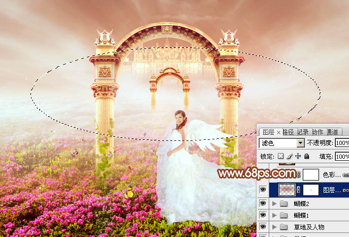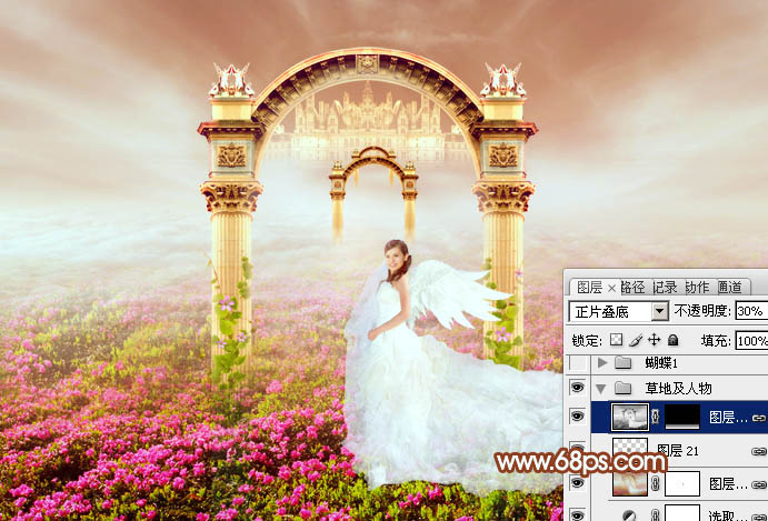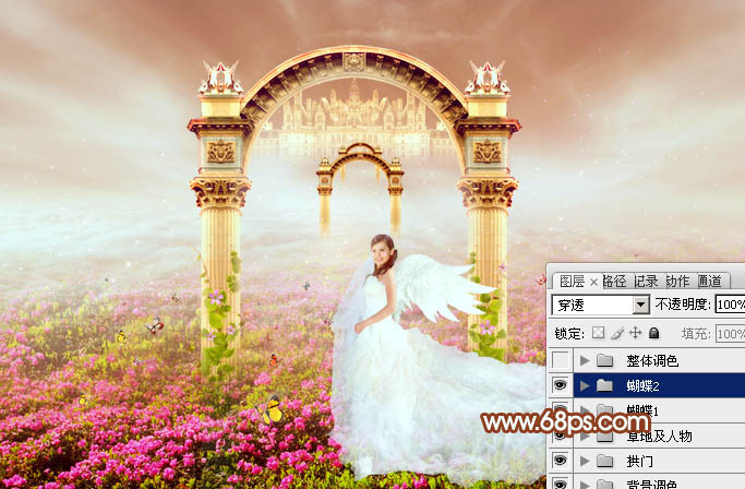 31、打开蝴蝶素材,给图片添加一些蝴蝶,效果如图58。