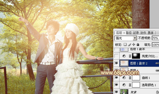 + J 把当前图层复制一层,不透明度改为:70%,效果如下图。