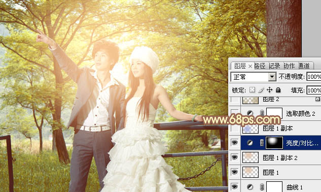 5、调出当前图层选区,创建亮度/对比度调整图层,适当增加图片对比度,参数及效果如下图。