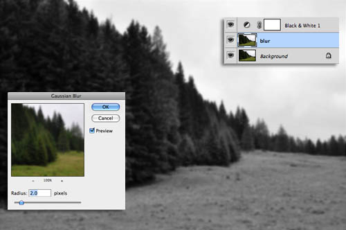 2、接下来,复制背景层,命名为“模糊”。执行:滤镜>模糊>高斯模糊,设置合适模糊量。确定后把图层暂时隐藏,后面会用到。