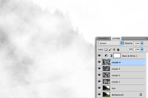 4、新增三个或更多层,布满了云层,建立一个厚厚的雾。