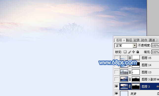4、打开雪地素材,拖进来,适当放好位置,添加图层蒙版,用黑色画笔把顶部不不要的部分擦掉,如下图。