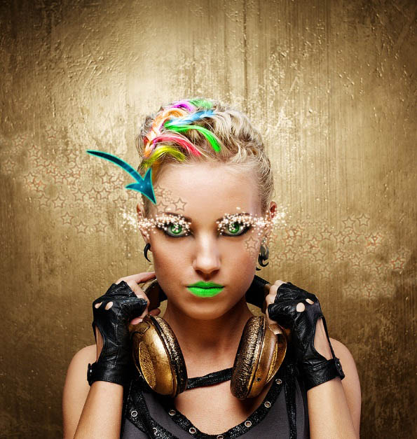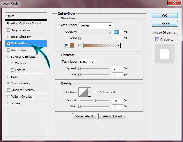 7、现在点击图层>图层样式>外发光。并添加一些外发光的星星。