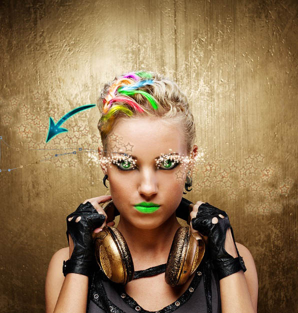 9、创建一个新层,并放置在星层。现在选择钢笔工具,创建一个在左边的条纹。