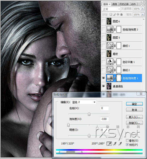 4、使用“色相/饱和度”工具分别调整各个通道的饱和度,使图片更加耐看,调整参数如下图所示。
