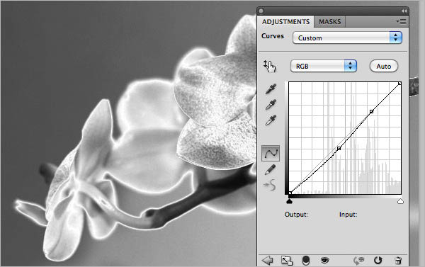 4、现在创建另一个曲线调整图层。这次使用普通的曲线工具。使用曲线可以改变画面的明暗。这个简单的步骤可以令任何照片大变样。在这里我用了略微弯曲的曲线减暗画面。