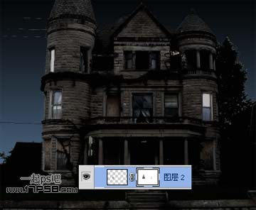 8、会有一些边框残留,另外要考虑明暗,月光从左侧照射,添加蒙版用笔刷涂抹掉一些部分。