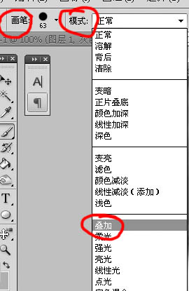 30、然后把画笔模式选成叠加,把颜色刷上去。