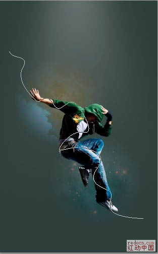 4、用钢笔勾出如下路径。并给路径一个合适的模拟压力的描边。这里,我给他9个像素的描边。然后再给他加上一个图层样式。因为要做缠绕的效果,再用蒙版擦掉不需要的部分,参数和效果如图。