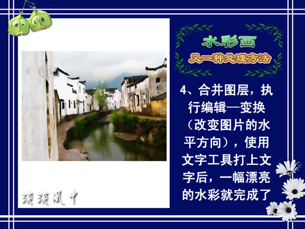 > 旋转画布 > 水平翻转,确定后选择文字工具打上装饰文字,完成最终效果。