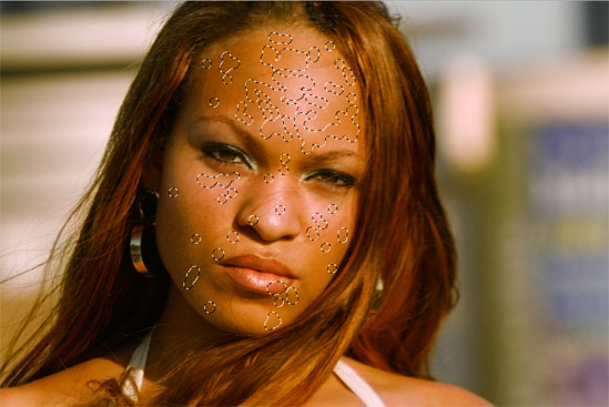 8、我们也消除小皱纹,可能惹人眼(仍与修复画笔工具的工作)。