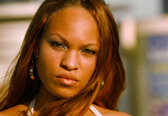 12、我们要努力创造完美肌肤的质感。选择多边形套索工具把脸部选取出来。
