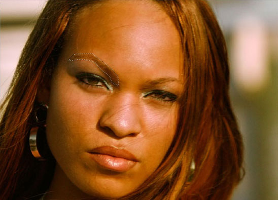 + D取消选定区域。删除第二个眉,并开始删去眼睛上以同样的方式。