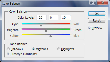 + Shift + E和应用图像>调整>色彩平衡与新创建的层以下参数。