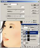 6”调整图层,参照步骤(9)中编辑蒙版的方法,使用“画笔”工具在蒙版中涂抹,绘制面部细节图像,如下图所示。