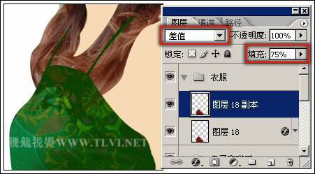 18 副本”图层显示,然后对该图层的“混合模式”选项和“填充”选项进行设置,如下图所示。