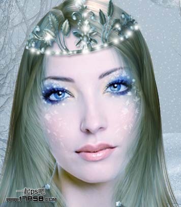 16、建新层,用白色实心画笔眼眼眶周围涂抹,图层模式叠加,适当降低不透明度。