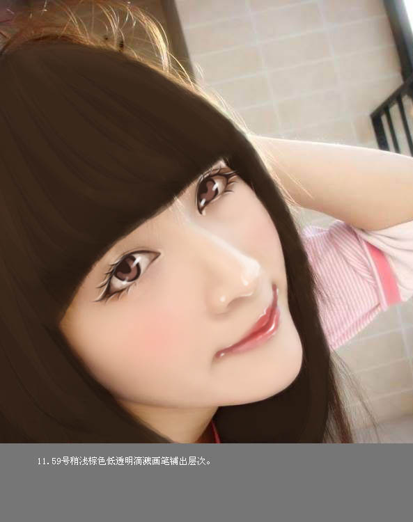 11、用59号稍浅棕色低透明度画笔铺出层次。