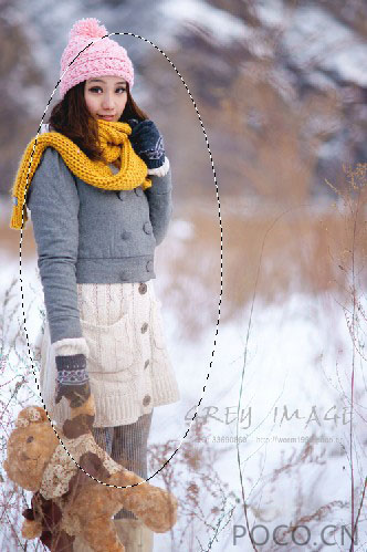 2、用椭圆选择工具圈出人物,然后羽化(这一步的目的是为了制造更大光圈的朦胧效果)。