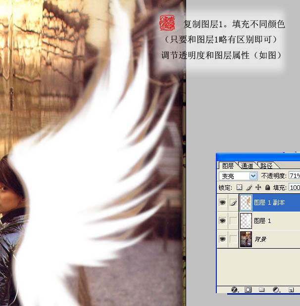 5、复制图层1,填充不同颜色,只要和图层1略有区别即可。适当调节透明度和图层属性。