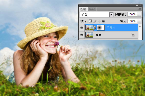 3、在到复制图层上面添加图层蒙板。创建一个渐变,如下图: