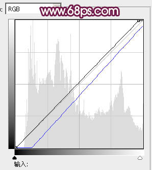 15、创建曲线调整图层,对RGB及蓝色调整,参数设置如图23,确定后只保留人物部分,其它部分用黑色画笔擦掉。